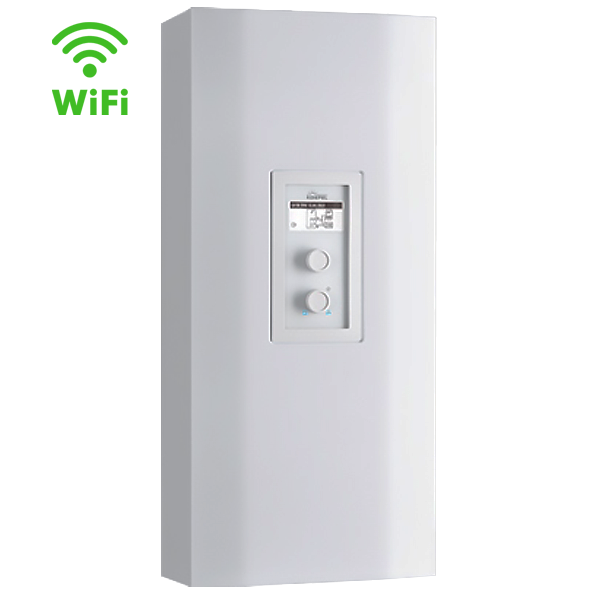 В сотрудничестве с теплообменником ГВС позволяет установить температуру воды и активировать циркуляционный насос в соответствии с установленными дневными и недельными программами. Отличительная особенность, этой модели, изменение мощности без установки дополнительных тэнов. У котла можно установить три мощности на 4, 6 и 8 кВт и, каждую в отдельности моделировать. С таким тепловым прибором можно смело достраивать площадь, не меняя при этом электрокотел.