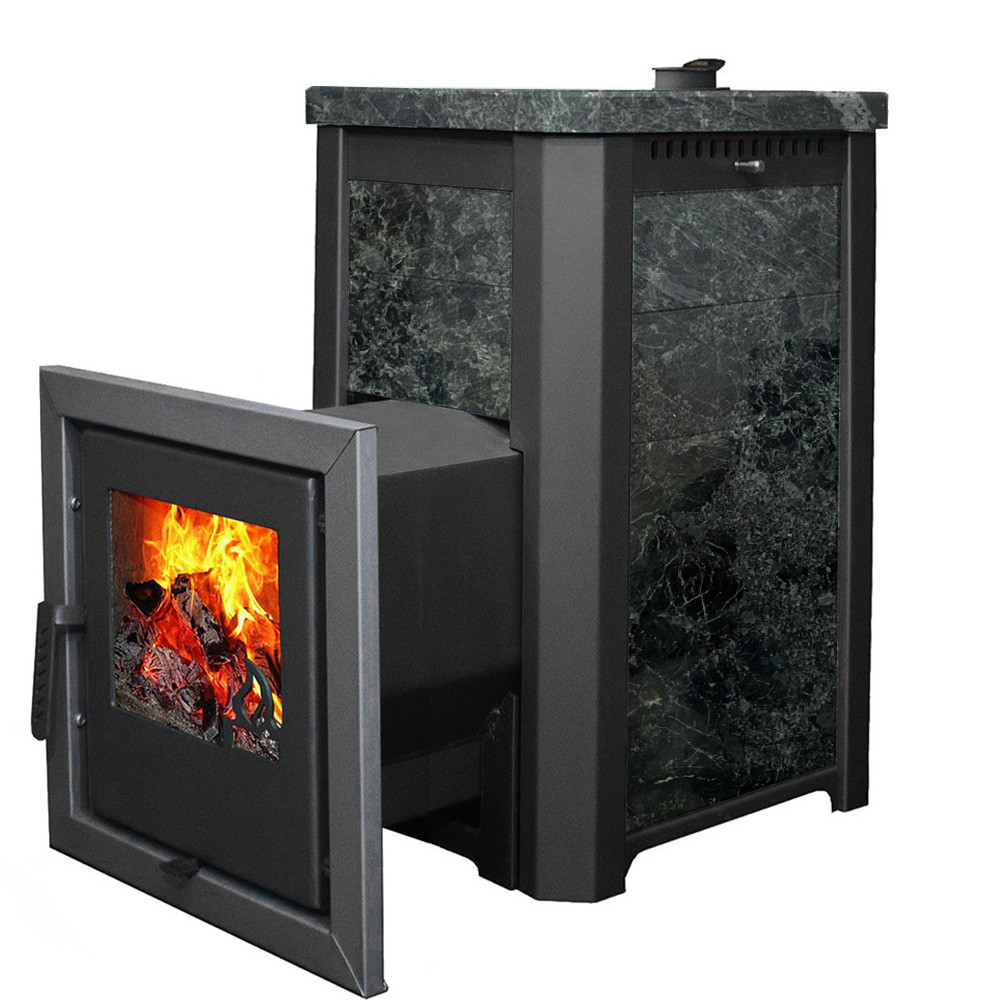 Дровяная печь Сказка Мини Пироксенит, удлиненная топка, дверь со стеклом