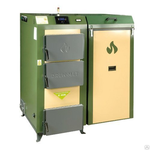 Тип котла: твердотопливный стальной котел с автоматической подачей топлива, встроенным бункером и автоматикой